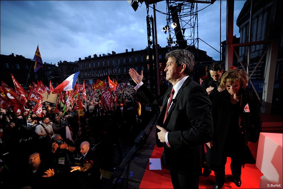 Partiendo de un 6% de intención de voto, el líder del Frente de Izquierda ha ido llenando plaza tras plaza en París, Toulouse, Lille, Marsella, y el jueves volverá a convocar a sus seguidores en la capital para la última demostración de fuerza. Méluche llama a los franceses a la “rebelión cívica contra Europa y los mercados” y a “devolver golpe por golpe los ataques a los poderes financieros”. Es el único candidato que no habla de recortes, y eso marca la diferencia en esta campaña donde la austeridad y el control de las cuentas públicas son moneda corriente.