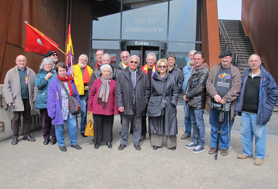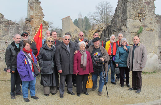 [FpMG, abril 2013].- Una delegación de militantes de la Federación Estatal de Foros por la Memoria, concretamente procedentes de Guadalajara, Alcalá de Henares, Rivas, Madrid y Miéres, acudió el pasado viernes 6 de abril al pueblo de Oradour-sur-Glane, situado en el Limousin francés, y que en junio de 1944 sufrió la masacre de sus 640 habitantes, (entre ellos varios españoles) a manos de una unidad de las SS nazi. Nos acompañó la periodista Evelyn Mesquida, autora de la investigación sobre «La Nueve», obra recientemente publicada sobre la actuación de los republicanos españoles en la división Leclerc.