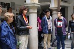 Frente al adusto monumento de granito, la representante de la Amical de Mauthausen, Rosa Torán, pronuncia unas palabras de saludo, presentando a los alumnos de los institutos de secundaria de Manresa y Santa Coloma de Gramanet, y de los demás participantes, entre los que se encontraban familiares de deportados cántabros asesinados en Mauthausen y al castillo de Artheim, miembros de la asociación AGE de Cantabria y Región de Murcia y Republicanos-RPS de Cantabria, y componentes de la asociación austriaca de los descendientes de los supervivientes españoles que se quedaron a vivir en aquel país.
