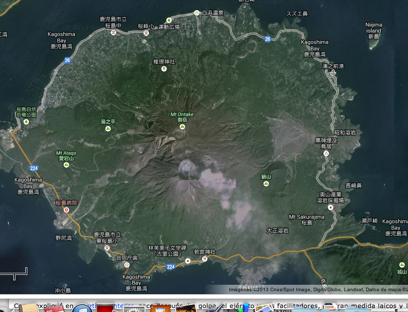 19 de agosto, 2013 ]La noticia ha llegado escueta y sin muchos comentarios. [ver noticia en Público] En Sakurajima, en una gran isla en la bahía de Kagoshima al sur de Japón, ha entrado en erupción un importante volcán. El volcán se ha comportado como todos los volcanes cuando erupciones, lo norma, ríos de lava kilométricos, columnas de humo y escorias de miles de metros de altura (5000 metros) y una gran zona afectada por las cenizas y proyectiles (a unos 1800 ms de distancia) . ¿Evolución para los próximos días? Imprevisible en realidad. Conviene ver las imágenes en video: