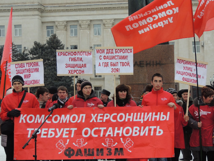En Járkov tuvo lugar una concentración frente al monumento al soldado libertador, en la que tomaron la palabra los dirigentes comunistas Ala Alexandrovskaya y Leonid Strizhko.