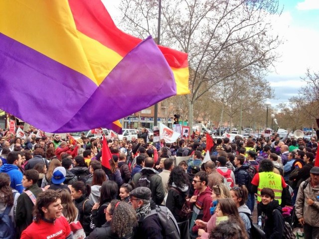 Hoy los tiempos son diferentes, aunque azotados por idénticas crisis del capitalismo. En aquella época estaba apunto de estallar la 2º Guerra Mundial (la Guerra Civil tan sólo fue el preludio de esta). En aquellos tiempos se defendía la República. Hoy no vamos a defender el actual régimen por muchos recortes que sufra. Lo que defendemos los republicanos, a parte de la necesaria dimisión del Gobierno en bloque, es la ruptura con el actual régimen neofranquista, monárquico-borbónico corrupto que padecemos los españoles. Muchos dirán que la República no es la panacea. Por supuesto que no. La República es la condición necesaria, no suficiente. Ante la inminente crisis energética de los combustibles fósiles, las guerras imperialistas que se avecinan y que podría desembocar en guerras mundiales, el auge del nuevo fascismo, el control mediante medios de masas, móviles con Internet redes sociales y la crisis capitalista que todavía va a seguir azotándonos la República es el instrumento para que el pueblo pueda gobernar el Estado, tener trabajo, vivienda digna, alimentación, Educación Pública y Sanidad Pública; para que no haya ausencia de Ley y haya laicismo; para que haya Justicia. La República no es condición suficiente, eso sí. No va a ser un camino primaveral de flores. Los enemigos de la República van a querer destruirla, como el 34. Pero es la salida necesaria que tiene el pueblo español, porque la salida del túnel está siempre hacia la luz y no parándonos en él o haciendo defensa de la oscuridad o del mismo túnel. Porque defender el actual régimen puede parecer más cómodo, da menos miedo, pero a la larga nos va a llevar a un callejón sin salida o lo que es peor hacia un abismo insalvable. Nuestra labor como republicanos después del 22 M es construir el Frente Popular hacia la III República. Todas las plataformas, mareas, partidos y sindicatos convocados en Madrid juntos en una candidatura de coaliciones conjunta para las próximas generales y una vez en el Parlamento se podrán hacer los cambios. Leyes hechas por el pueblo y una nueva Constitución abierta para que las futuras generaciones puedan refundar el Estado las veces que sea necesario. Tomar la calle sin objetivos políticos claros nos llevará a largo plazo al desánimo y al desgaste físico y emocional. No esperemos como en 1.873 o en 1.931, a que la situación sea tan desastrosa que la única opción válida sea ya la República porque se han agotado ya todas las opciones políticas incluida la dictadura. No pasemos otra vez por otra dictadura fascista. Estamos en una fase que tiene rasgos parecidos la de 1.929 donde Alfonso XIII apoya la Dictadura de Primo de Rivera antes de que se pueda producir el advenimiento de una República. Los Borbones siempre han intentado salvarse a lo largo de la Historia. Los republicanos y las republicanas tenemos la tarea de dar contenido político hacia la República y de lucha obrera a las Plataformas, Mareas, Marchas y Sindicatos; hacia la ruptura de este régimen que padecemos, hacia la III República. Hay que hablar de forma clara a la gente. Como dijo Azaña finalizando su mitin de Comillas en el 34: ¡Pueblo, por España y la República! ¡Todos a una!