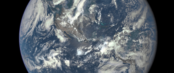 Por eso sólo los astronautas del programa Apollo pudieron hacer esta toma (en su último intento) y por eso, la nueva misión (Deep Space Climate Observatory) inspirada por Al Gore y hecha posible a pesar del bloqueo político de la Administración Bush (nada es casualidad) y el relanzamiento del programa por parte de la Administración Obama. Esta nueva imagen está norteada, como Dios manda, con el Polo Ártico en la parte superior de la imagen, y longitudinalmente centrada en América, como corresponde a la perspectiva de quien planifica y ejecuta la idea. Es notable la diferencia con las características de la canica azul, más sujeta al azar de la realidad, con menos sesgos.