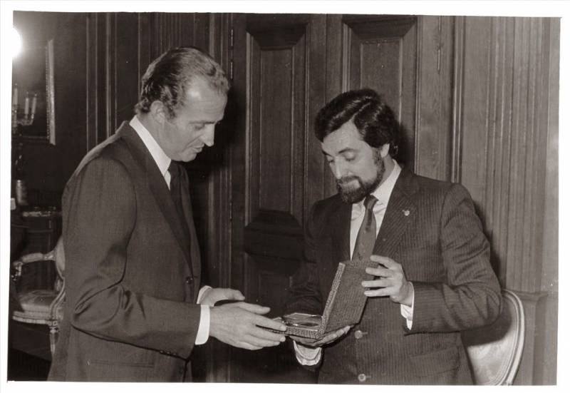 Efectivamente, fue el 2 de abril de 1981, no llegaba a dos meses del golpe del 23-F. El ayuntamiento de Cordoba otorgó la medalla de Oro de la ciudad al Rey Juan Carlos Borbón y su alcalde se desplazó a Madrid a hacer la entrega en mano. Obligaciones del cargo, del programa-programa-programa, de los equilibrios del momento, en cualquier caso un acto completamente acorde con la política de «Reconciliación Nacional» emprendida por el PCE de Santiago Carrillo.