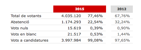 - Ganan con mayoría absoluta de diputados los independentistas, pero los votos no alcanzan el 50%.