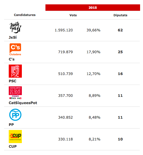 - El bloque a favor de los recortes/retallades es mayoritario: JxSí, C`S, PSC y PP, aplastan.