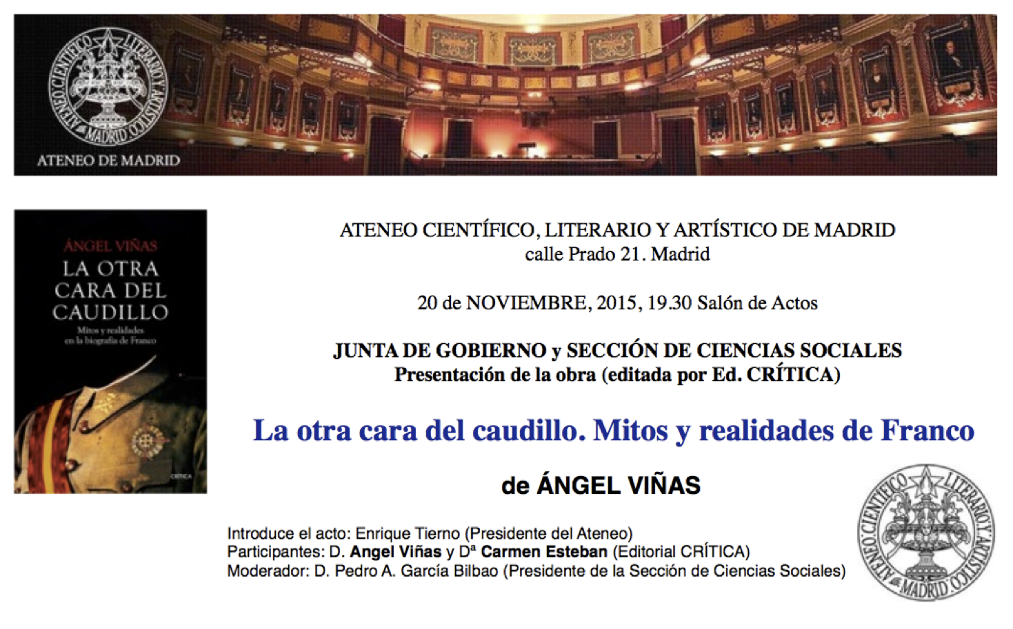 One Response “Presentación del libro: La otra cara del caudillo. Mitos y realidades de Franco, de Ángel Viñas / Ateneo de Madrid 20 de Noviembre 2015” →