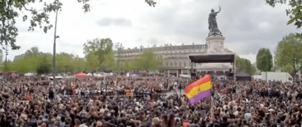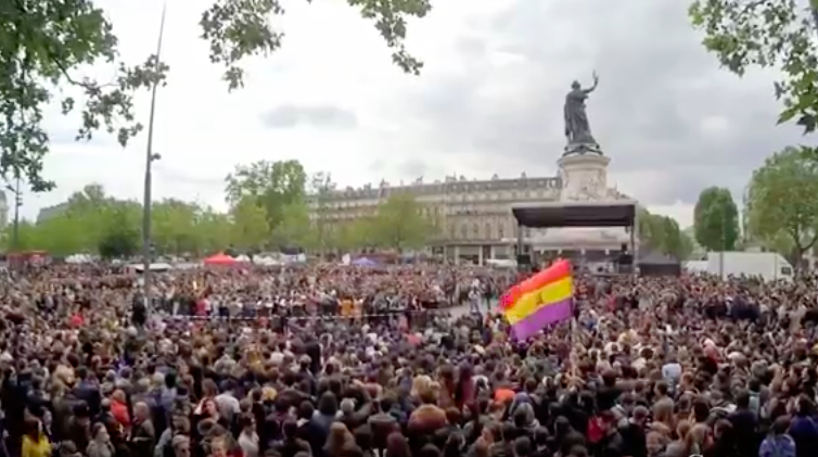 Plaza de la República, París, 15 de mayo, cantan…. Vamos, igualito que aquí…. Esto es Memoria Histórica. saber quien eres, de donde vienes y saber porque pasa lo que pasa…., si sabes eso puedes permitirte el lujo de ser «creativo». En fin, sin palabras. Bien por el compañero que llevó la TRICOLOR.