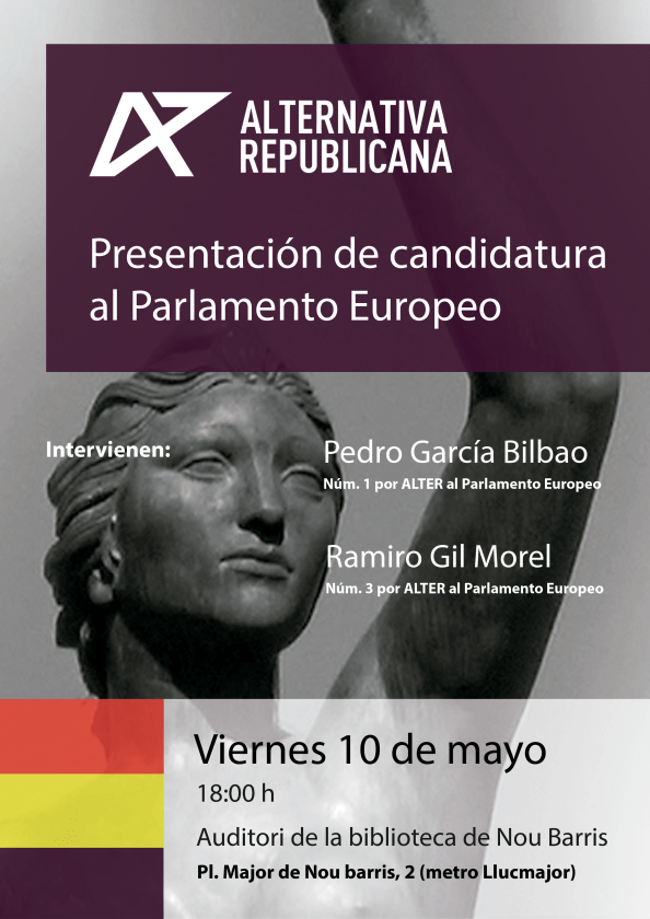 […] En 2019 fui el candidato de Alternativa Republicana en las elecciones europeas. Este texto que sigue es el manifiesto que presenté como compromiso y presentación de principios ante el electorado. Hicimos actos públicos en Gijón, Madrid, Barcelona, Motril, Granada y Málaga. Fue una acción testimonial, pues no disponíamos de medios para la campaña, pero lo hicimos, me puse a la disposición de Alter, tome mi coche y partí a donde se organizaron actos. En Barcelona lo hicimos en NouBarris y fue especialmente emotivo, todos en realidad. Pedro A. García Bilbao. Algunas de las ideas y materiales de campaña se pueden ver aquí VER Mensajes […]