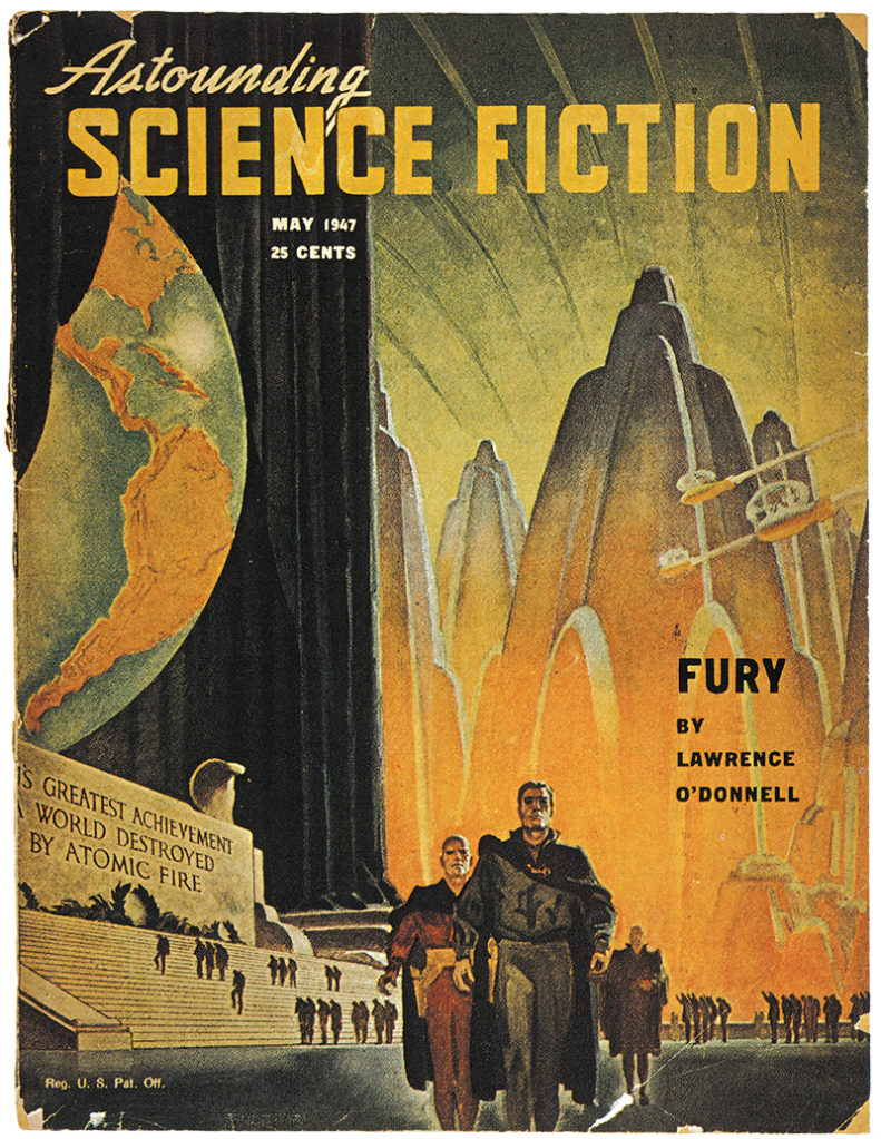 La primera en desaparecer fue Astounding… Es decir, no la revista, sino su título. John Campbell llevaba largo tiempo insatisfecho de la impresión beatificante que causaba dicho título, y había realizado varios intentos de hacer casi invisible en la portada la palabra Astounding (asombrosa), recalcando el término Science Fiction. Pero comprendía que esto no engañaba a nadie. El nombre era demasiado evocador de los días de revistas baratas y de maravilla del pasado. Tenía que existir algo más acorde con la era espacial, más análogo al progreso científico…