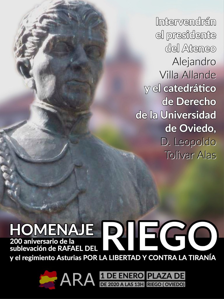 Oviedo, 1 de enero de 2020. Acto de homenaje al gral. Riego organizado por el Ateneo Republicano de Asturias (ARA).