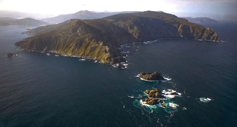 Hay unos pequeños islotes en el extremo de la Estaca de Bares. Esta es la imagen. El punto más al norte visto desde el norte. El mar ruge allí todos los días. Esta imagen podría decirse que ha servido de inspiración para imaginar la isla. En la foto a la derecha el océano Atlántico y a la izquierda el mar Cantábrico.