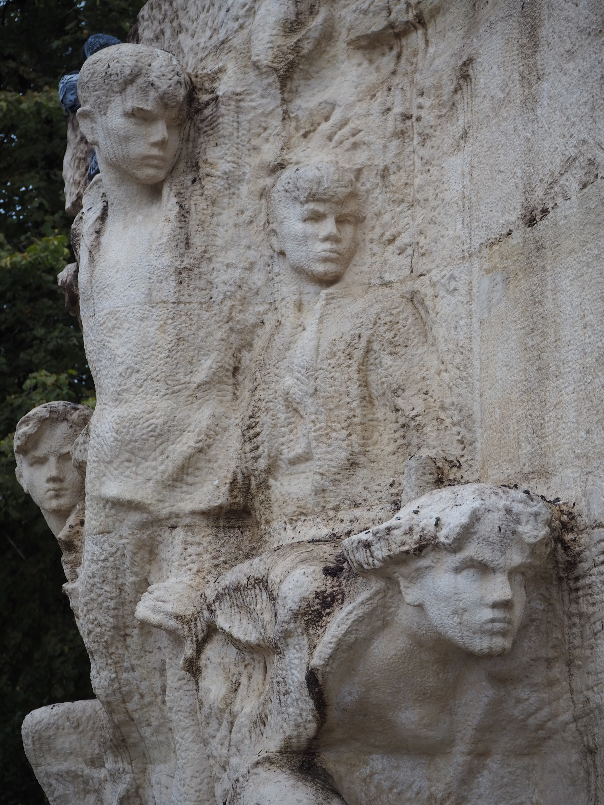 Imagen de detalle de Monumento en recuerdo de los jóvenes defensores de Leningrado. Parque Tauride, San Petersburgo. Escultores: V. S. Novikov, I. N. Kostyukhin. Arquitectos: AI Alymov, F. A. Gepner. Foto: PAGB. Noviembre 2019