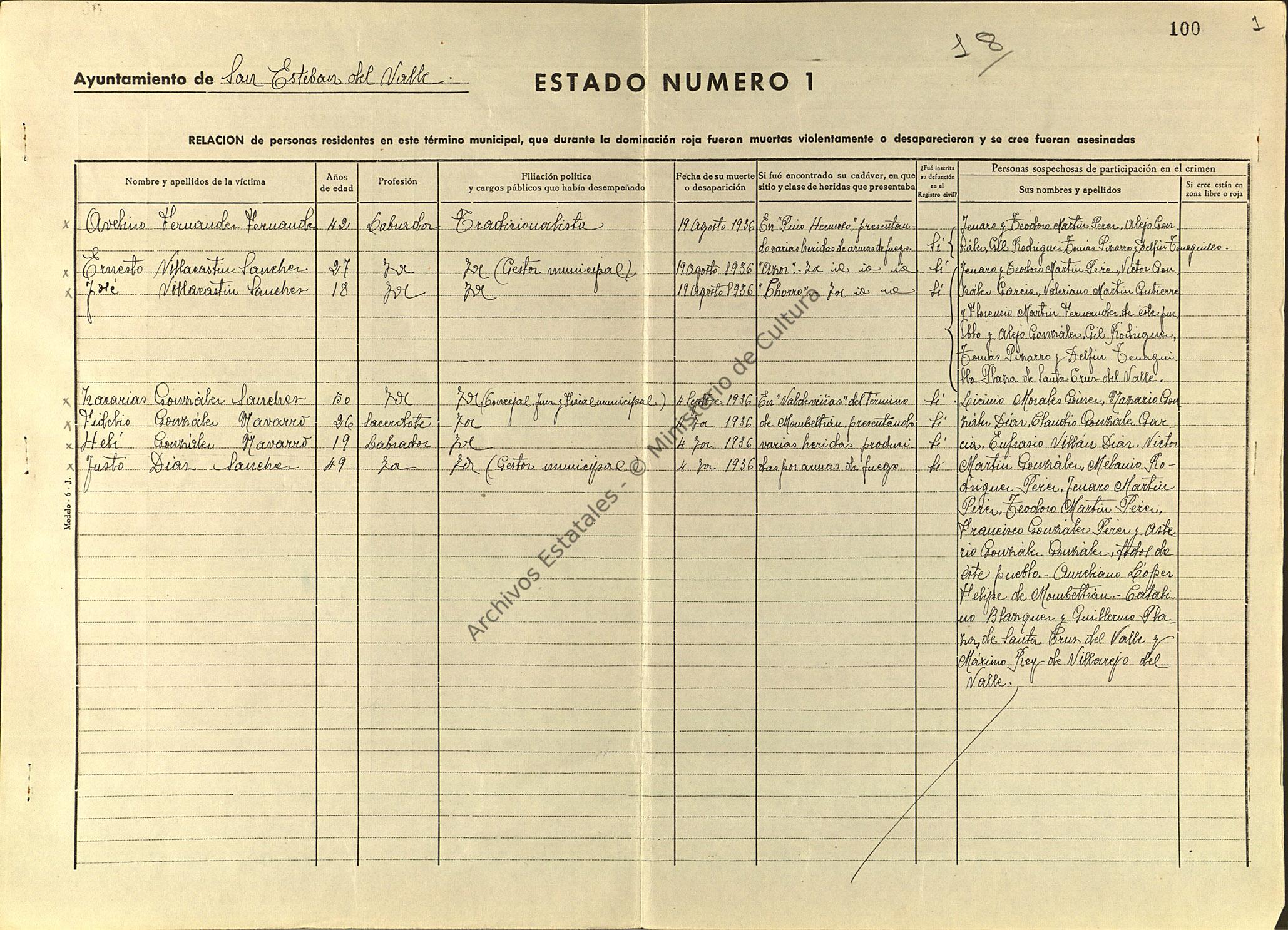 Documentos correspondientes a Causa General del A.H.N.Subdirección General de los Archivos EstatalesMinisterio de Cultura.España