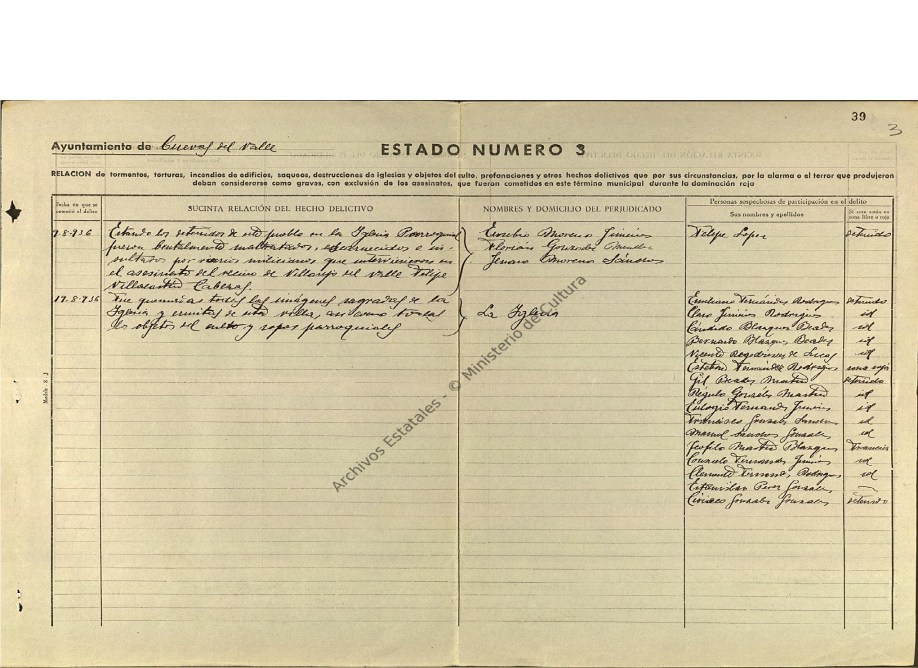 Documentos correspondientes a Causa General del A.H.N.Subdirección General de los Archivos EstatalesMinisterio de Cultura.España
