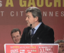 Jean Luc MelencHon en el mitín fundacional del Partit de GaucHe. Actualmente Ha sido nombrado candidato a la Presidencia por el Frente de Izquierda. En Longjumeau con simpatizantes Habla de las ideas de su partido y comenta la campaña.